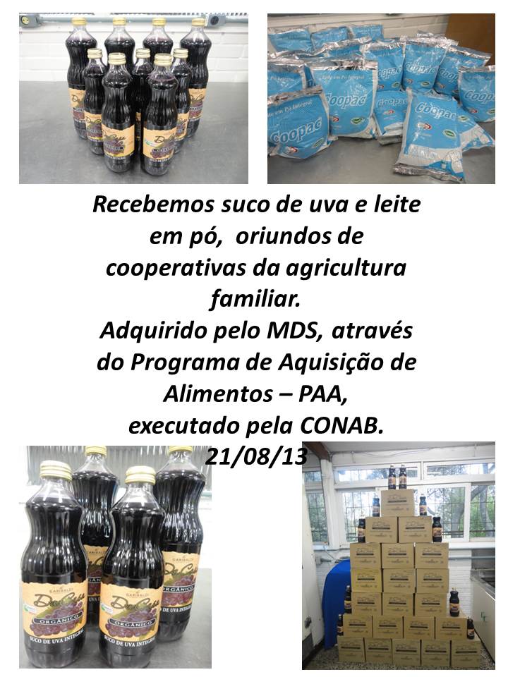 07/05/2013 - Recebemos 54 pacotes de Biscoitos,57 kg de farinha de trigo e 20kg de açúcar.